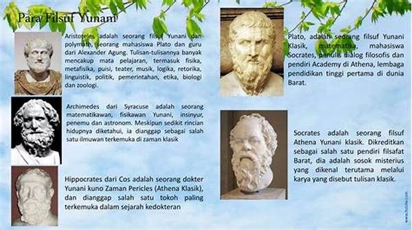 Menyingkap sejarah Yunani Kuno sama halnya dengan membuka ensiklopedia besar yang isinya penuh dengan pengetahuan emas dan tokoh-tokoh besar yang berjasa membentuk fondasi pemikiran Barat. Apakah Anda pernah bertanya-tanya bagaimana mungkin peradaban kuno seperti Yunani bisa meninggalkan jejak yang begitu dalam hingga berabad-abad kemudian? Di balik tirai waktu, kita menyaksikan lahirnya para pemikir cemerlang yang tidak hanya mengubah cara pandang manusia pada zamannya, tetapi juga menggema hingga hari ini. Mari kita selami dunia yang penuh intrik dan kebijaksanaan dari Yunani Kuno: 5 tokoh filsuf yang pemikirannya paling berpengaruh dalam peradaban barat!